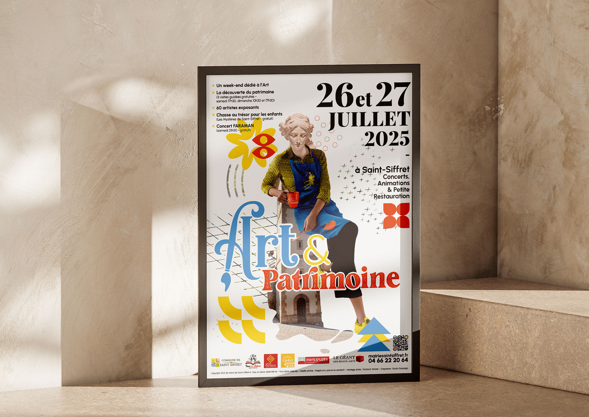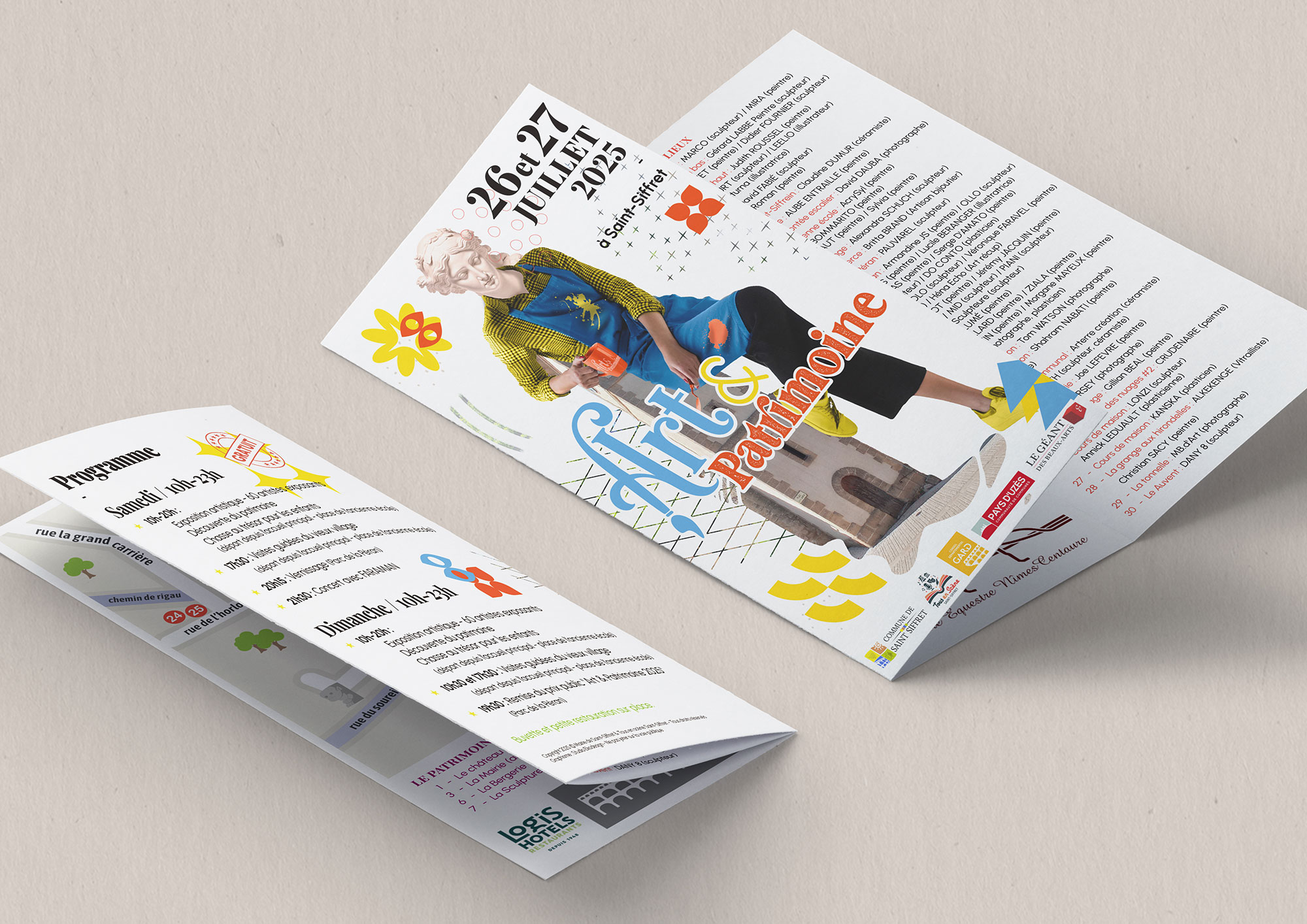 Créations visuelles pour le festival Art&Patrimoine de Saint-Siffret : Logo, Identité visuelle, Affiche, Dépliant, Flyers, Carton d’invitation, Bâches, Catalogue des artistes, Site internet Visuels réseaux sociaux