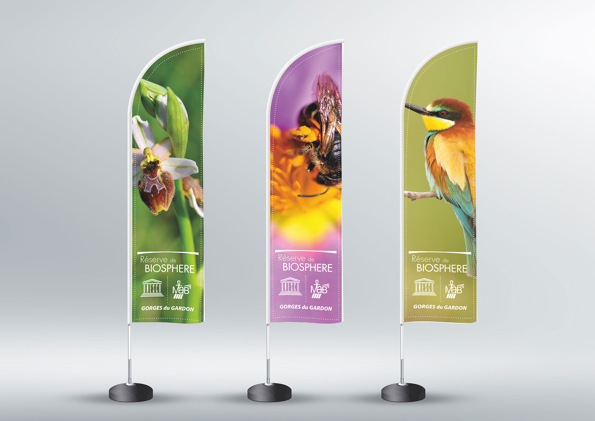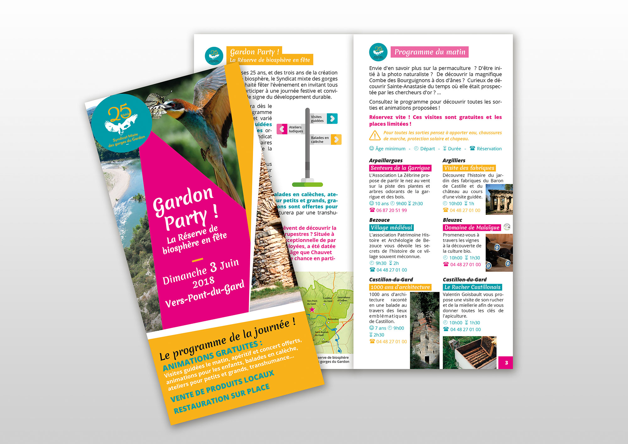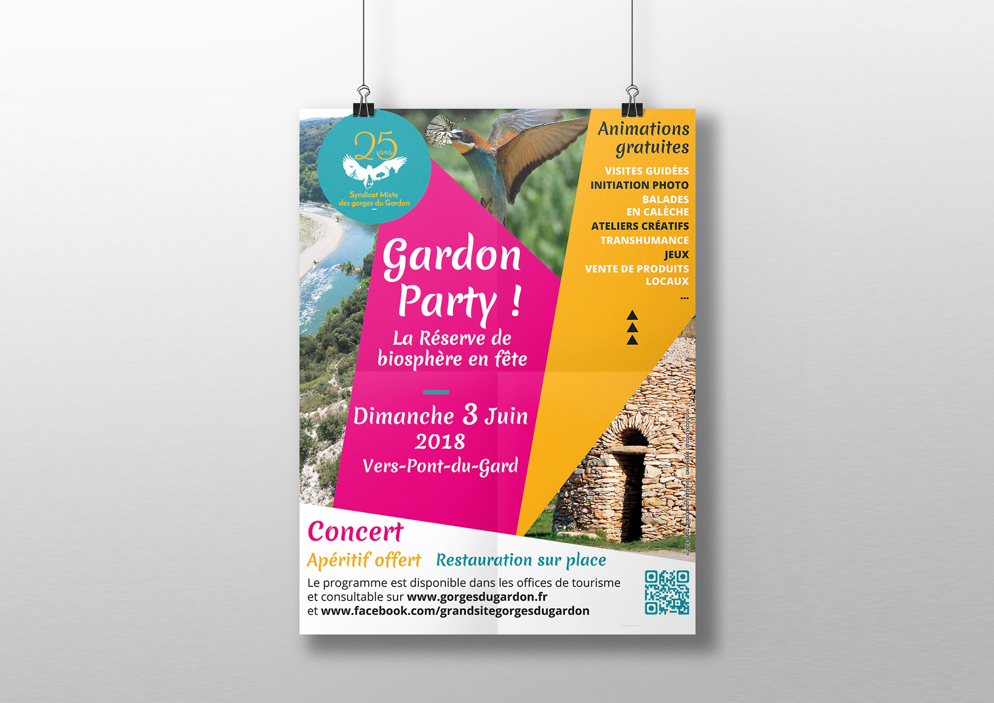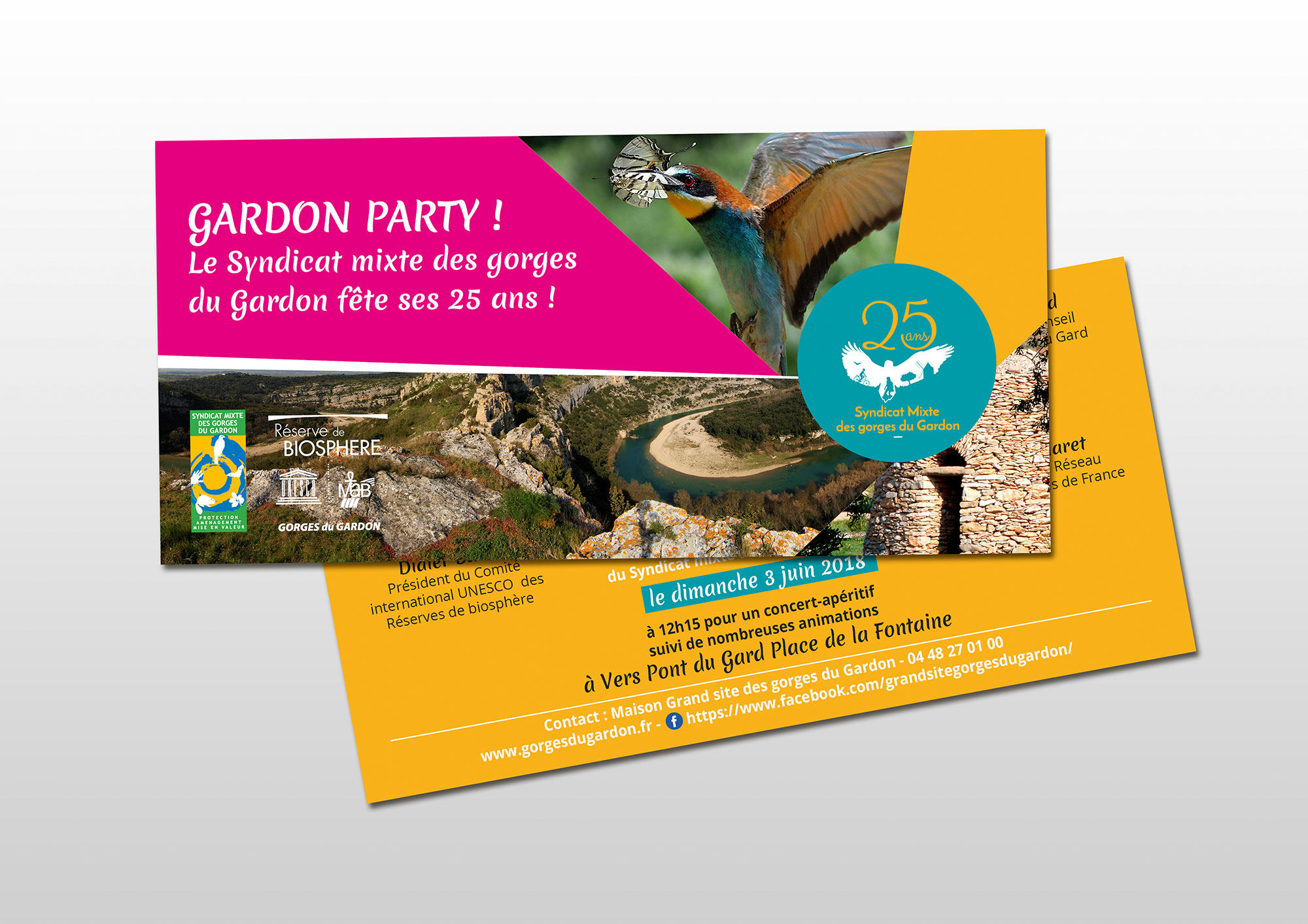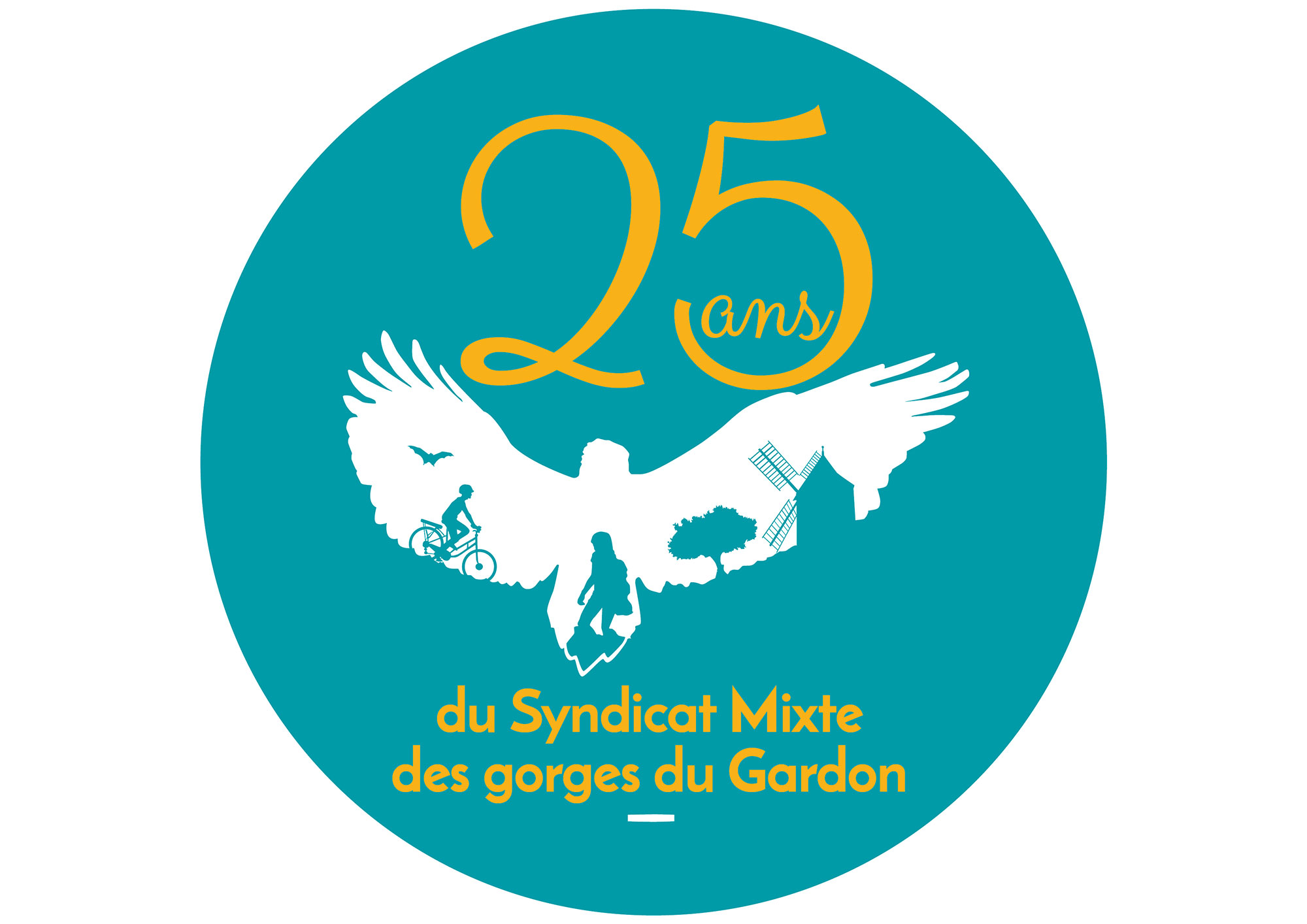 Logo pour les festivités des 25 ans du SMGG : Création d’un logo original et déclinaison pour la charte de la communication des festivités (affiches, kakemono, flyers…). Client : Syndicat Mixte des Gorges du Gardon.