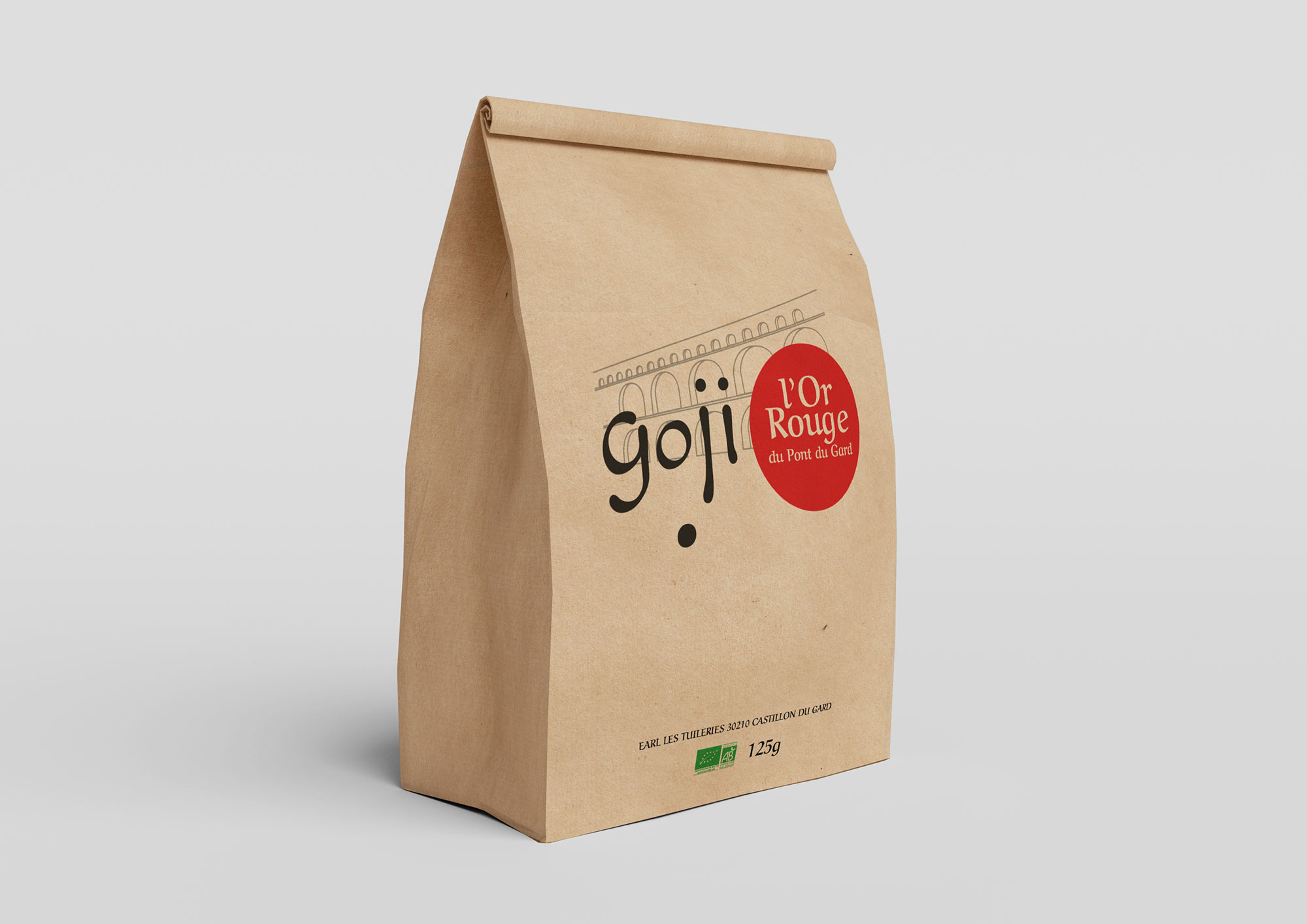Logo et étiquettes : Création d’un logo original pour la société L’or Rouge du Pont du Gard. Ce logo sera ensuite décliné pour une étiquette produit. Client : L’or Rouge du Pont du Gard.